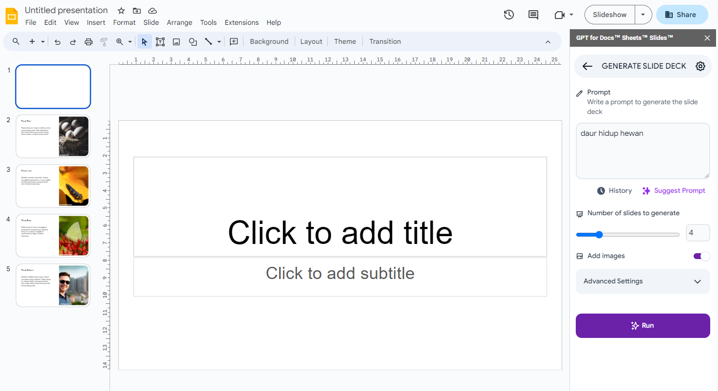 6. Ketik "DAUR HIDUP HEWAN" di slide pertama